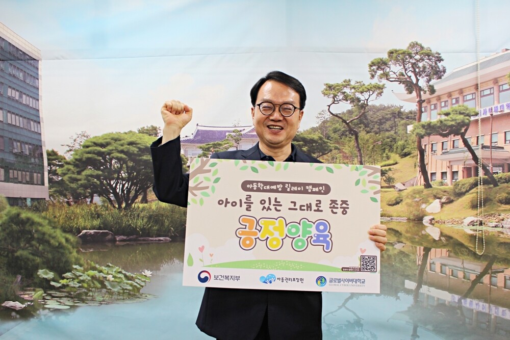 [대학저널 온종림 기자] 공병영 글로벌사이버대학교 총장이 19일 아동학대에 대한 경각심을 높이고 긍정 양육 인식을 확산하기 위해 ‘아동학대예방 릴레이 캠페인’에 참여했다.