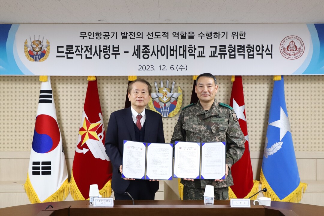 [대학저널 이선용 기자] 세종사이버대학교가 12월 6일 국방부드론작전사령부와 업무협약식을 체결했다.