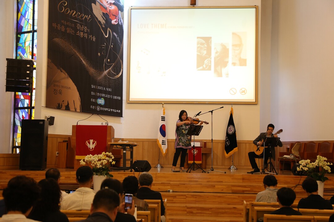 이번 음악회는 경기도에서 주최하고 한신대학교에서 주관하는 ‘2023년 경기도 평생배움대학 GCC 4060 새롭G 한신대 캠퍼스’ 사업의 일환으로 김남중 비올리스트와 정욱 클래식 기타리스트가 3시간 동안 ‘마음을 읽는 소통의 기술’이라는 주제를 가지고 다양한 곡들을 선보였다.