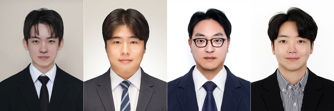 왼쪽부터 유도헌 석사, 정세환 석사, 김교범 교수, 최민재 교수. |