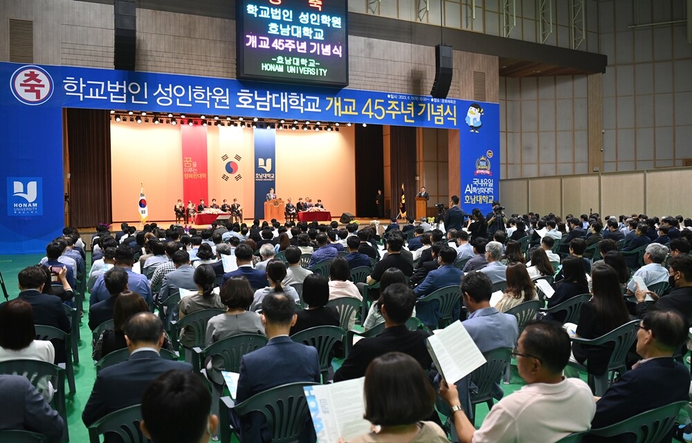 [대학저널 온종림 기자] 학교법인 성인학원 호남대학교는 15일 개교 45주년 기념식을 갖고 혁신으로 변화를 주도하는 융복합 인재양성대학과 국내 최고의 AI특성화 대학 비전을 앞당기는데 매진할 것을 다짐했다.