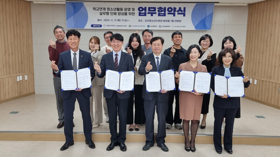 [대학저널 이선용 기자] 국립군산대학교 대학일자리플러스센터가 군산중앙여자고등학교, 군산남중학교, 군산중학교, 군산청소년수련관과 11일 군산청소년수련관 7층 연회장에서 ‘학교연계 청소년활동 운영 및 실무형 인재 양성’을 위한 협약을 체결했다.