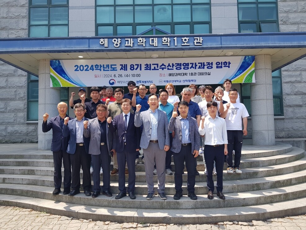 [대학저널 이선용 기자] 국립군산대학교가 26일 해양과학대학 1호관 대회의실에서 ‘2024년도 제8기 최고수산경영자과정’ 입학식을 개최했다.