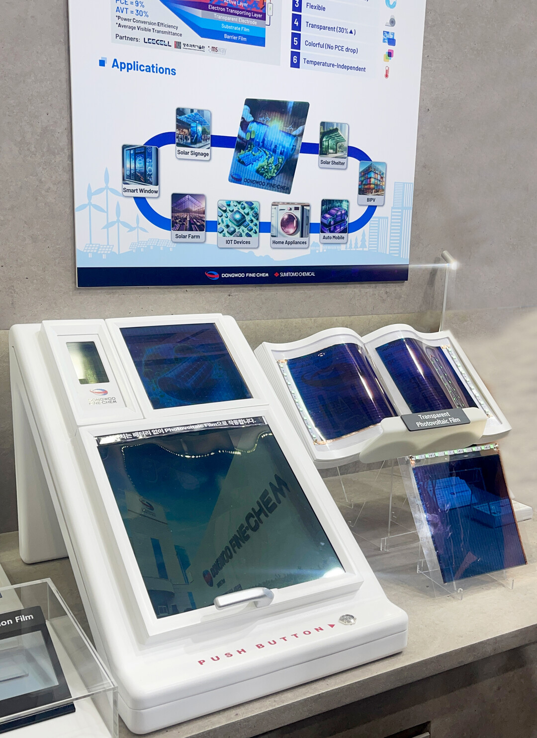 연구팀은 또한 동우화인켐㈜ 부스에서 차량용 스마트윈도우에 반투명 태양광 필름을 전력원으로 적용한 모빌리티를 전시해 관람객의 큰 관심을 모았다.