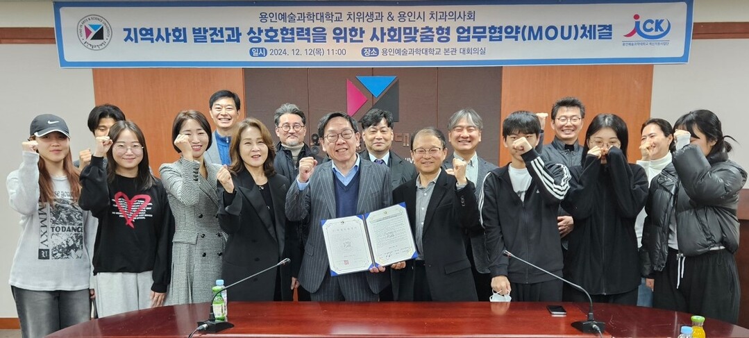용인예술과학대와 용인시 치과의사회가 지역사회 발전과 상호협력 위한 업무협약을 체결했다. 사진=용인예술과학대 제공 |