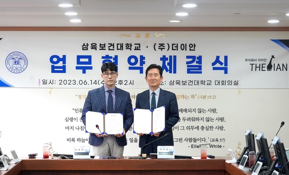 [대학저널 온종림 기자] 삼육보건대학교가 지난 14일 학내 대회의실에서 ㈜더이안과 산학협력을 위한 협약을 체결했다.