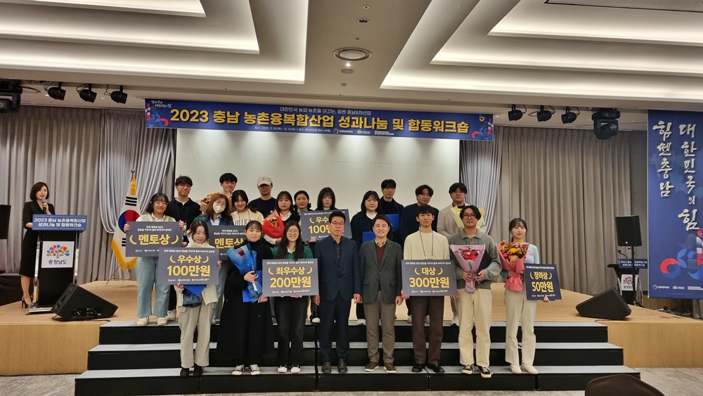한기대 ‘2023 전국 대학(원)생 충남술TOP10 홍보 아이디어 공모전 시상식’이 1일 롯데리조트 부여에서 진행된 충청남도 ‘충남 농촌융복합산업 성과나눔 및 합동워크숍’ 행사장에서 열렸다. 사진=한기대 제공 |