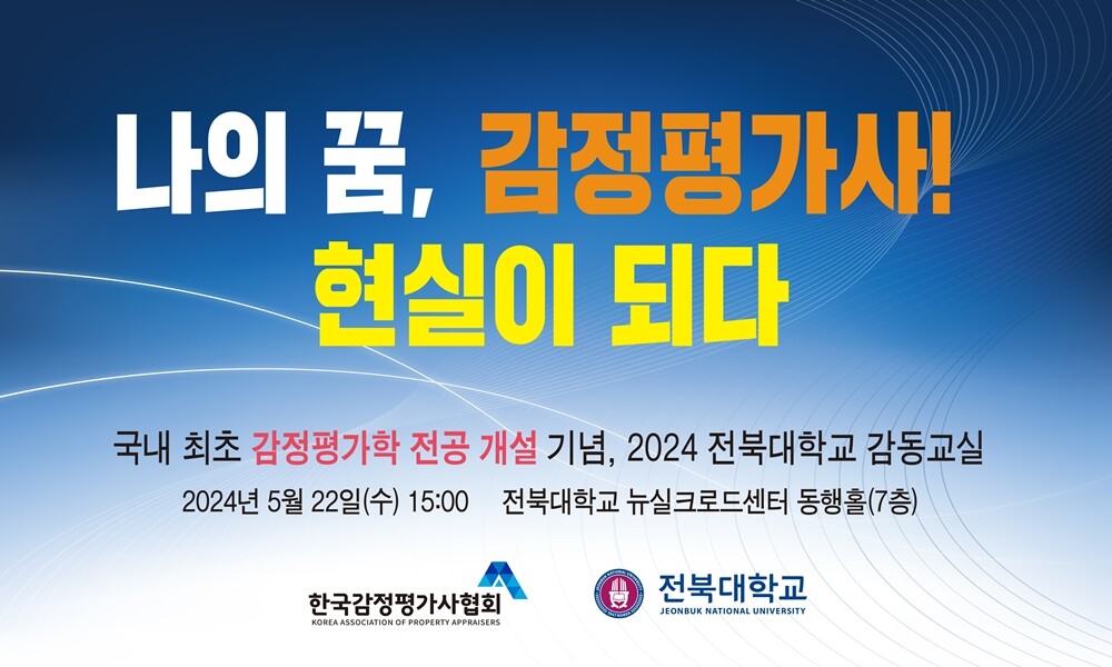 이 전공 개설을 기념하고 감정평가사들과의 네트워크 강화를 위해 22일 오후 2시 30분 전북대 뉴실크로드센터 동행홀에서 감정평가사 네트워킹 세미나와 특강이 열린다.