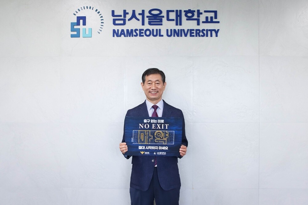 [대학저널 온종림 기자] 윤승용 남서울대학교 총장이 22일 마약의 심각성을 환기하고 범죄라는 경각심을 고취해 마약 범죄를 예방하기 위한 ‘NO EXIT’(출구없음) 캠페인에 동참했다.