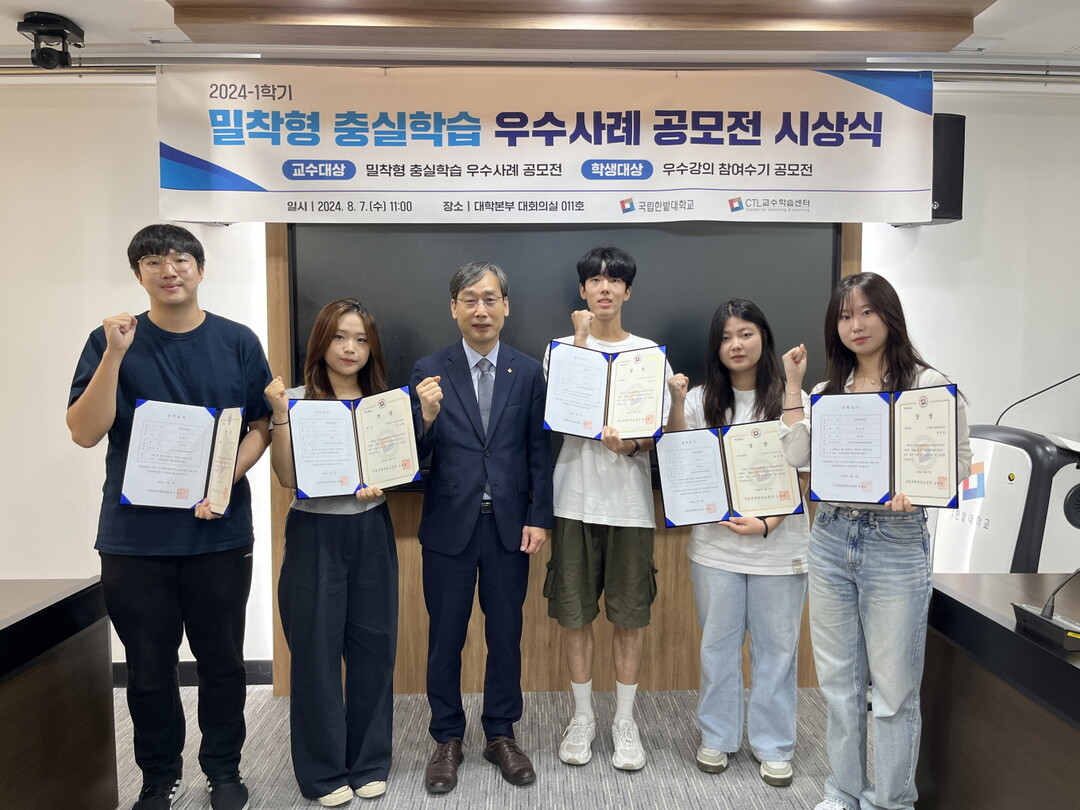 [대학저널 이선용 기자] 국립한밭대학교는 7일 교내에서 우수 수업사례 발굴과 공유·확산을 통해 교육성과를 높이고자 마련한 ‘2024년도 1학기 밀착형 충실학습 우수사례 공모전’ 시상식을 개최했다.