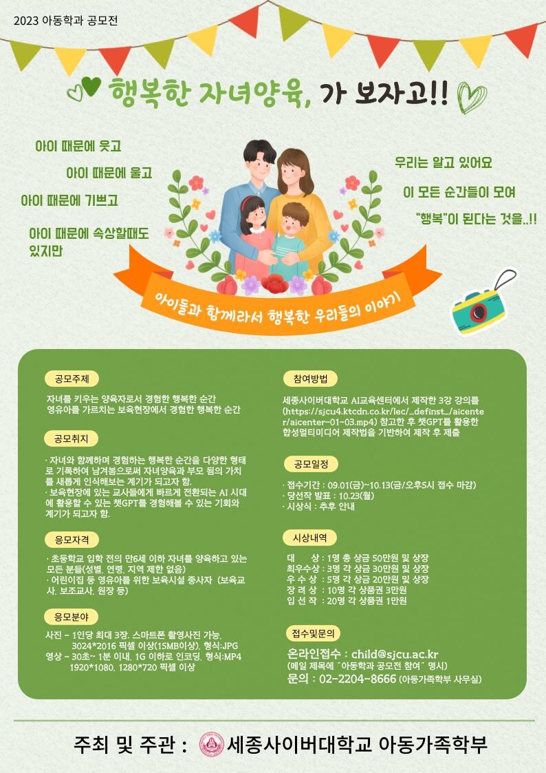 공모전에 관한 접수 및 문의는 세종사이버대 아동학과 홈페이지에서 확인할 수 있다.