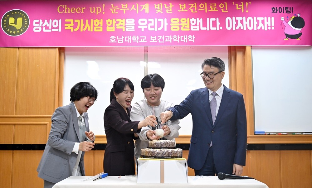 [대학저널 이선용 기자] 박상철 호남대 총장이 2일 오전 보건과학대학 소속 7개 학과를 돌며 2023학년도 보건의료인 국가시험을 대비해 막바지 시험공부에 전념하고 있는 4학년 재학생들에게 피자셋트와 음료수를 합격 응원 선물로 전달하고 격려했다.