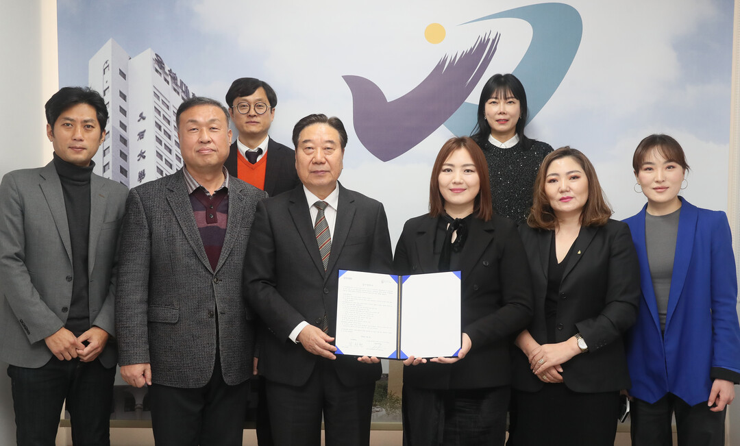 2일 전주캠퍼스 대학 본관 2층 총장 집무실에서 열린 국제교류 협약 체결식에는 남천현 총장과 히시게바야르 잠스란자브(HISHIGBAYAR Jamsranjav) 교장을 비롯해 양 기관 관계자가 참석했다.
