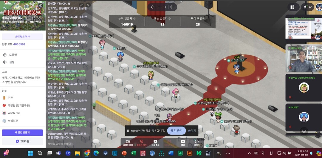 세종사이버대가 지난 5월 2일 국방아카데미를 개설하고 대학 메타버스 캠퍼스에서 온라인으로 첫 강연을 진행했다. 사진=세종사이버대 제공 |