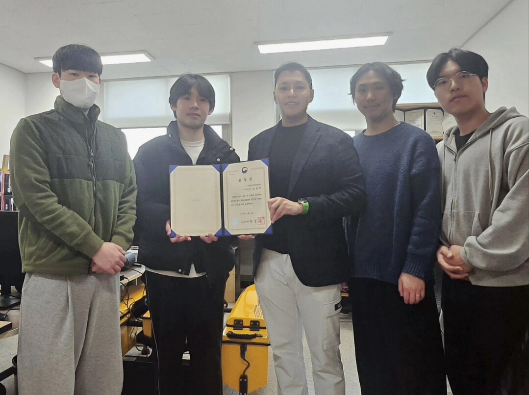 신동훈 교수와 학생들이 수상 후 기념촬영을 하고 있다. 사진=국립한국해양대 제공 |