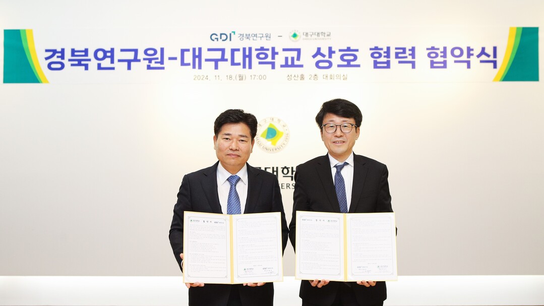[대학저널 이선용 기자] 대구대학교가 경북연구원과 지역 산업 발전을 위한 정책 연구와 학술 교류를 위해 협약을 체결했다.