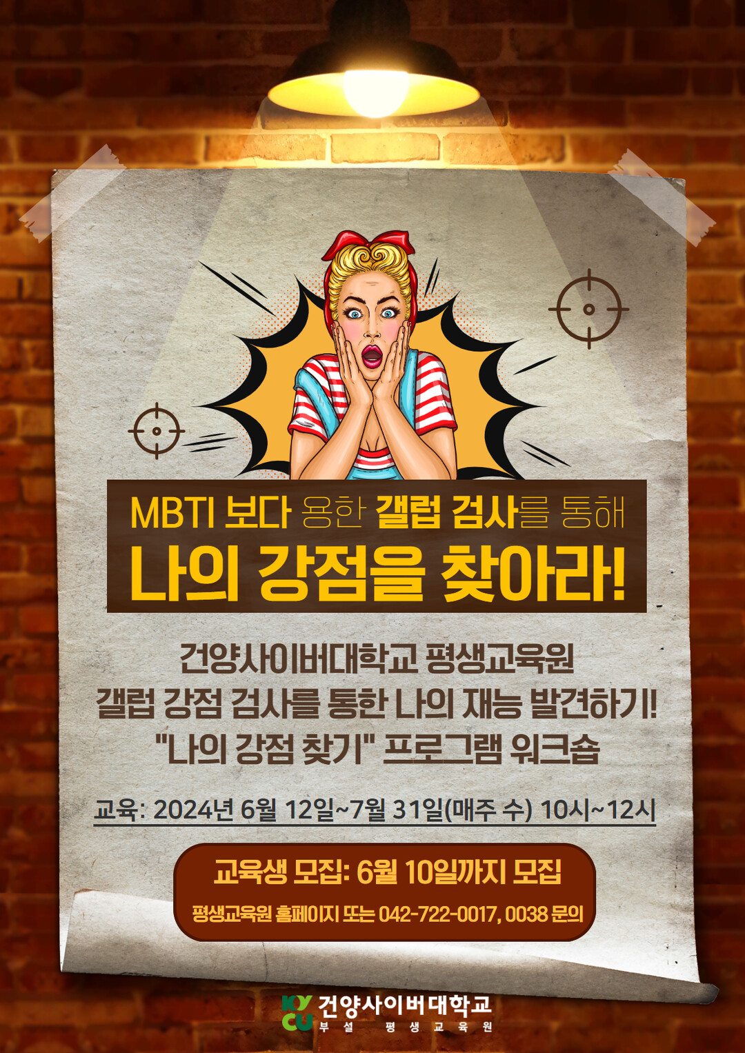 [대학저널 이선용 기자] 건양사이버대학교 부설 평생교육원은 갤럽(GALLUP) 강점 검사를 활용해 나의 성격 강점을 찾아보는 ‘나의 강점 찾기’ 워크숍 프로그램을 8주 과정으로 운영한다고 29일 밝혔다.