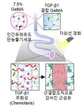 이에 박성수 교수 연구팀은 인간 유래 유도만능줄기세포(human induced pluripotent stem cell; hiPSC)를 근조직과 근결합조직으로 분화할 수 있는 방법을 개발하였다. 연구팀은 바이오잉크의 강성도와 전환성장인자 베타(transforming growth factor-β; TGF-β)를 조절하며 근조직 및 근결합조직으로 분화할 수 있는 최적의 환경을 구축했다.
