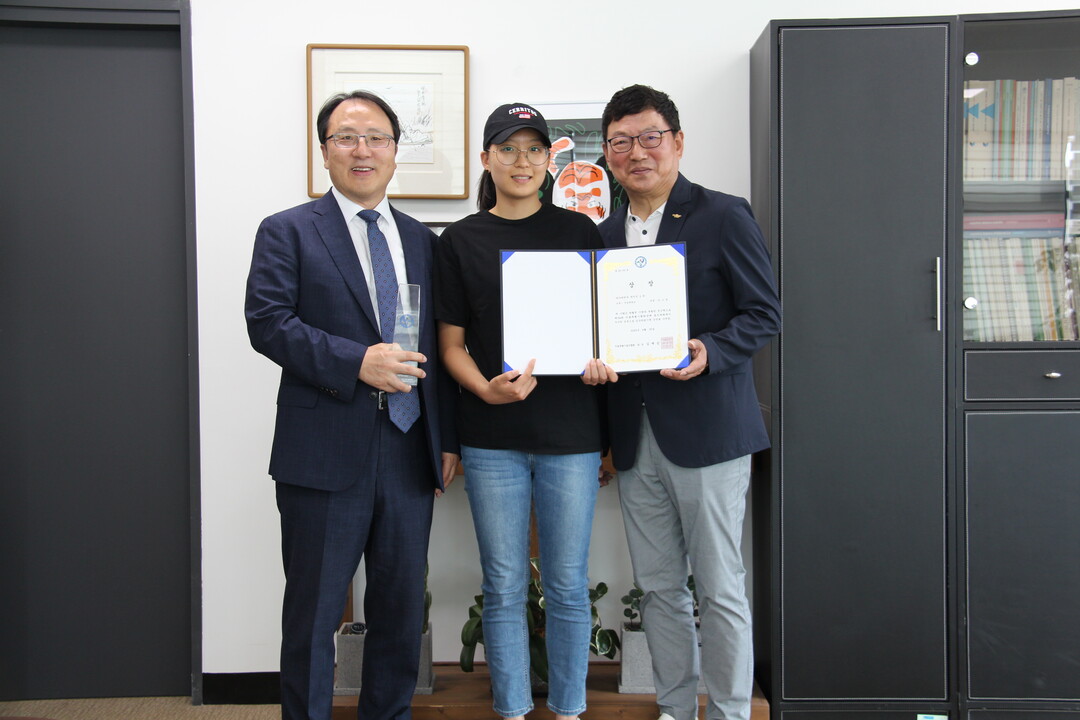 | 김고은(가운데) 서일대 스포츠헬스전공 학생이 제 34회 서울특별시협회장배 골프대회에서 2등을 한 뒤 기념촬영하고 있다. 사진=서일대 제공 |