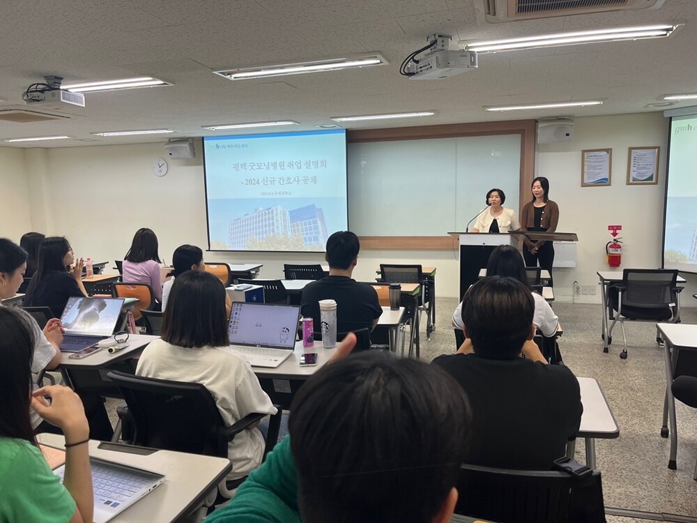 [대학저널 온종림 기자] 국제대학교 간호학과가 지난 4일과 5일 4학년 재학생 38명을 대상으로 채용설명회를 교내 예지관에서 실시했다.