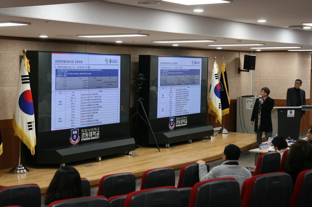 [대학저널 온종림 기자] 경동대학교가 지난 14일 원주 메디컬캠퍼스에서 ‘2023 지방대학활성화사업 1차년도 성과포럼’을 개최했다. 지난해 모두 19개의 사업을 진행한 경동대는 이날 교직원과 학생 등 100여 명이 모여 우수 사례와 성과를 공유했다.