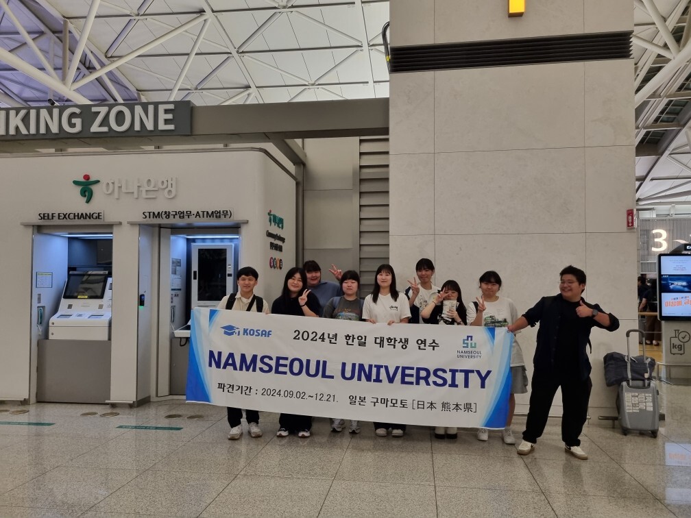 [대학저널 이선용 기자] 남서울대학교는 교육부와 한국장학재단에서 주관하는 ‘한·일 대학생 연수 사업’에 선정되어 2일 9명의 참가 학생이 일본 쿠마모토로 출국했다고 밝혔다.