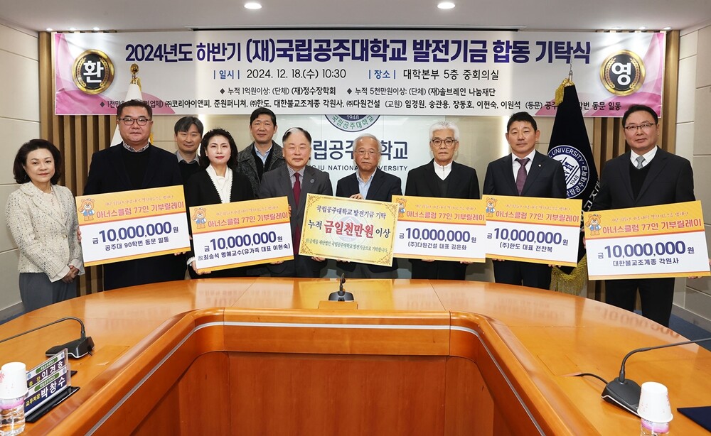 국립공주대가 18일 2024년도 하반기 (재)국립공주대학교 발전기금 합동 기탁식 행사를 개최했다. 사진=국립공주대 제공 |