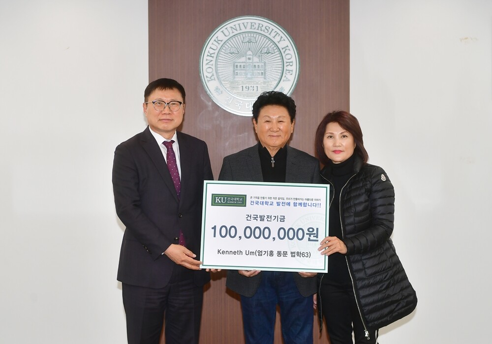 [대학저널 온종림 기자] 미국 LA에 거주하는 엄기홍 씨가 건국대학교에 발전기금 1억원을 기부했다. 엄씨는 건국대 법학과를 졸업했다.
