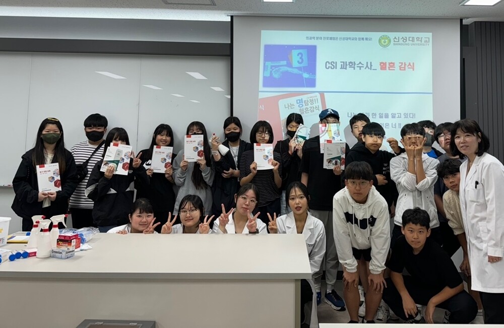 [대학저널 온종림 기자] 신성대학교가 임상병리과 채혈 동아리 ‘따끔따금’ 주관으로 당진 수청중학교 학생 20명에 진로탐색 프로그램의 일환으로 혈흔감식 프로그램을 진행했다.