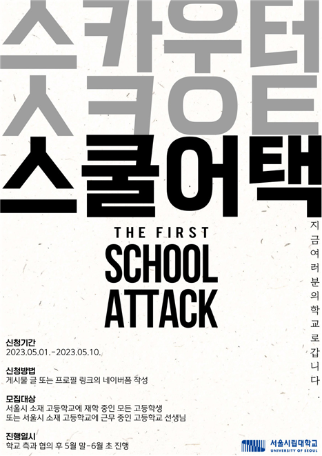 [대학저널 온종림 기자] 서울시립대학교 입학처가 5월 중 서울시 소재 고등학교를 대상으로 스쿨어택(School-Attack)행사를 한다.