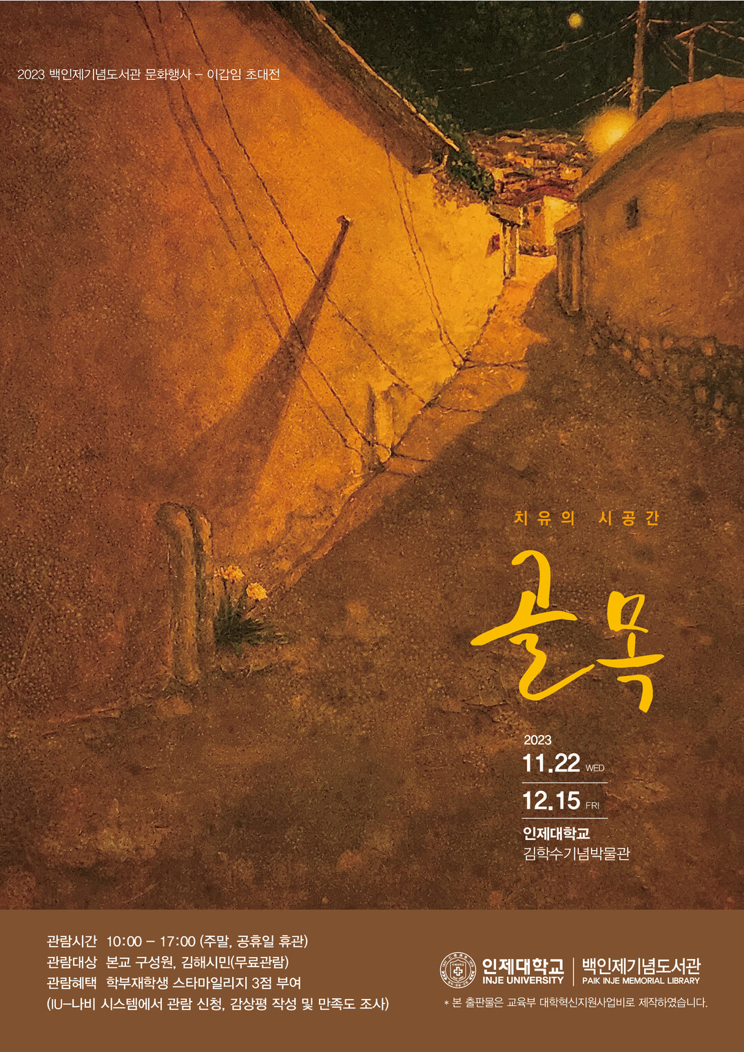 [대학저널 이선용 기자] 인제대학교가 22일부터 김학수기념박물관에서 서양화가 이갑임의 ‘치유의 시공간, 골목’ 초대전을 선보인다.