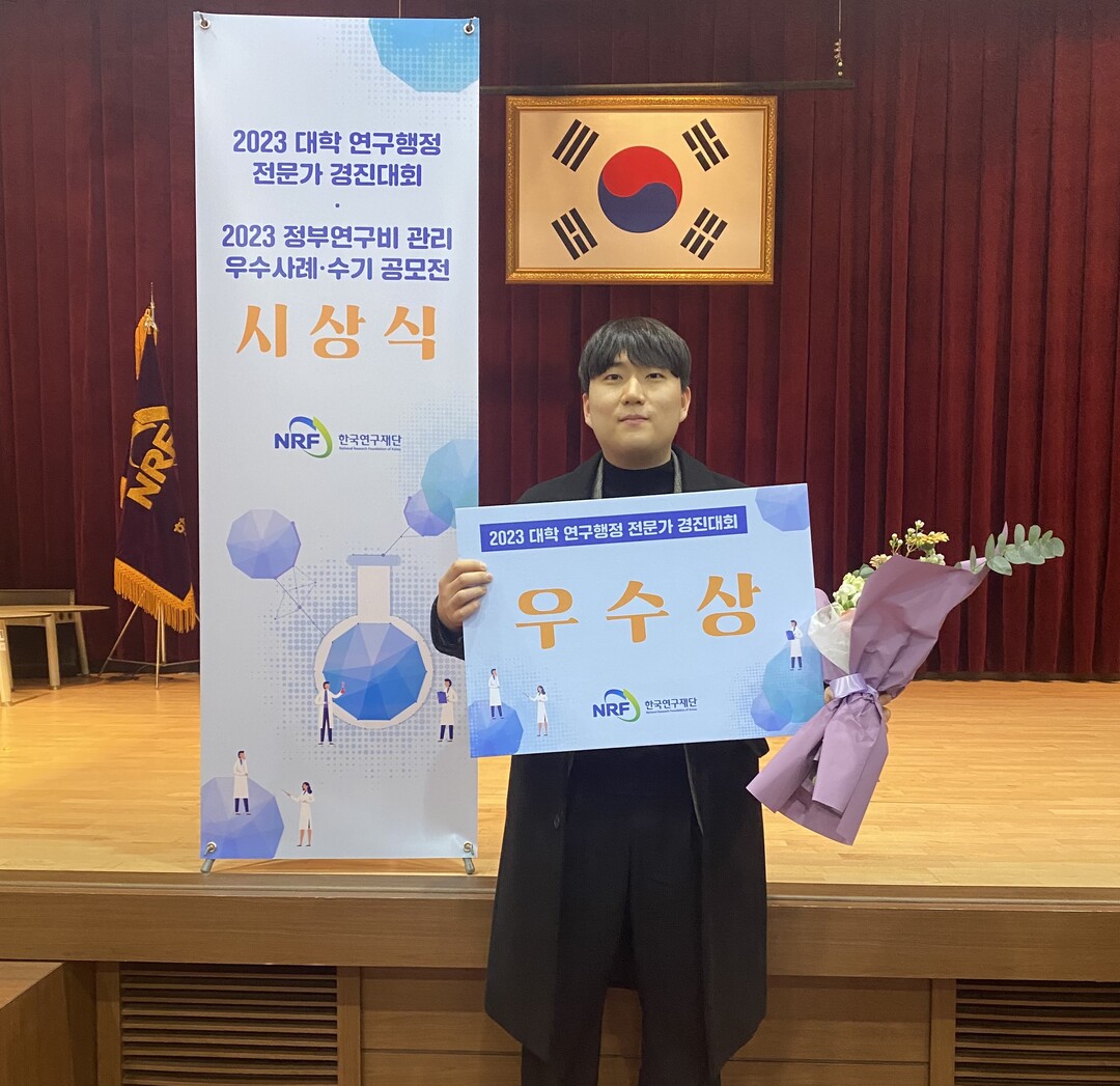 [대학저널 이선용 기자] 조선대학교는 최근 한국연구재단에서 개최한 ‘2023년 대학 연구행정 전문가 경진대회’ 시상식에서 산학협력단 소속 직원인 김명철(사진) 씨가 개인부문 우수상을 수상했다고 27일 밝혔다.