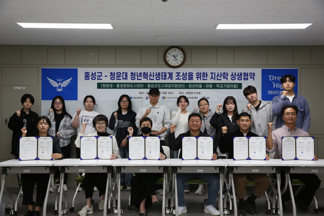 [대학저널 이선용 기자] 청운대학교는 지난 10일 희망관 216호에서 홍성군도시재생지원센터, 홍성문화도시센터, 청년마을, 마중 등과 청년혁신생태계 조성과 상생 발전을 위한 협약을 체결했다고 11일 밝혔다.