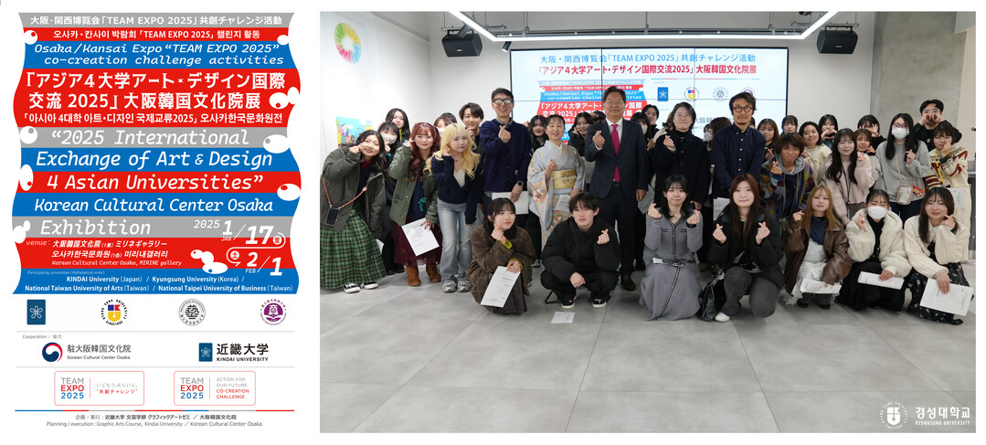 [대학저널 이선용 기자] 경성대학교 시각디자인전공이 일본 오사카 한국문화원의 전시 후원으로 오사카·칸사이 EXPO 홍보 프로그램 ‘TEAM EXPO 2025’ 아시아 4개 대학 일본 오사카 한국문화원전에 한국대학 대표 자격으로 초청돼 참가했다.