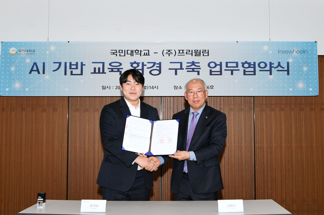 국민대가 ㈜프리윌린과 기초학력 진단 및 AI 기반 교육환경 구축을 위한 업무협약을 체결했다. 사진=국민대 제공 |