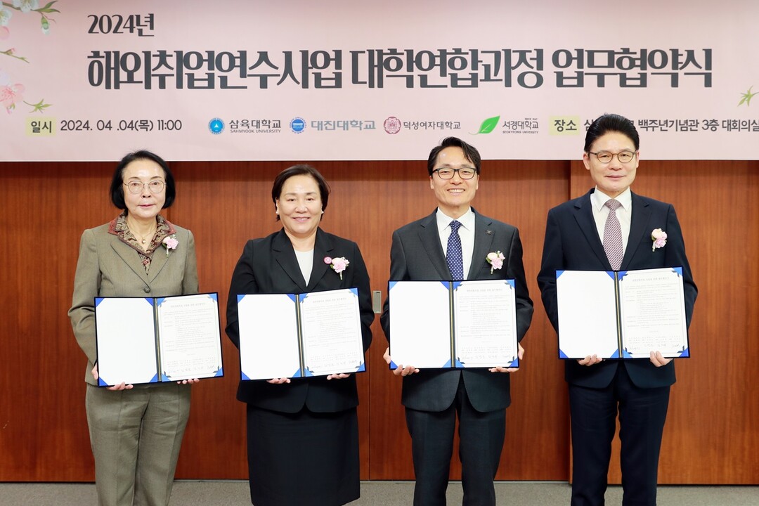 [대학저널 이선용 기자] 덕성여자대학교는 지난 4일 삼육대 100주년 기념관에서 해외취업연수사업 대학연합과정 운영기관 상호 업무협약을 체결했다.