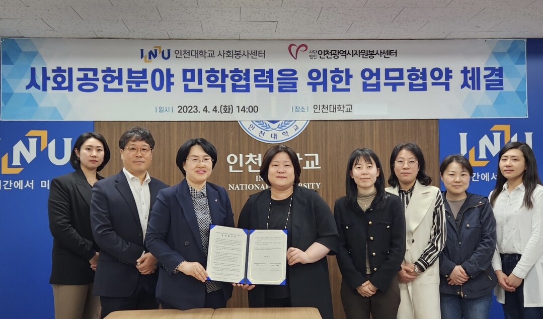 [대학저널 온종림 기자] 인천대학교는 사회봉사센터가 인천광역시자원봉사센터와 지역사회 발전과 사회공헌활성화 및 민학 협력체계 구축을 위한 업무협약을 체결했다고 5일 밝혔다.