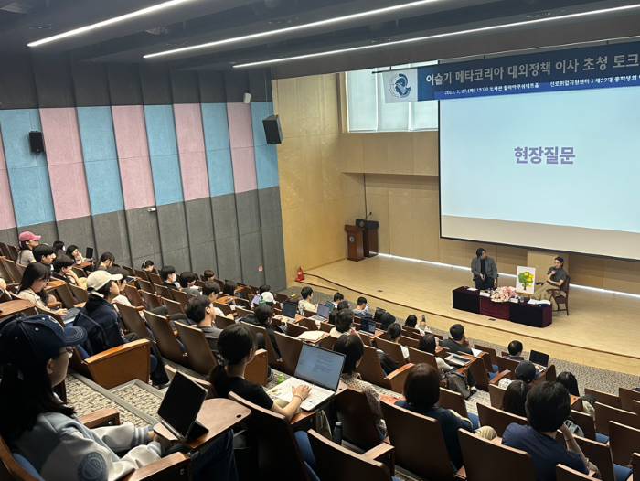 한국외대 대학일자리플러스본부가 지난 5월 28일 서울캠퍼스 도서관 휠라아쿠쉬네트홀에서 이슬기 메타코리아 대외정책팀 이사를 초청해 특강을 개최했다. 사진=한국외대 제공 |