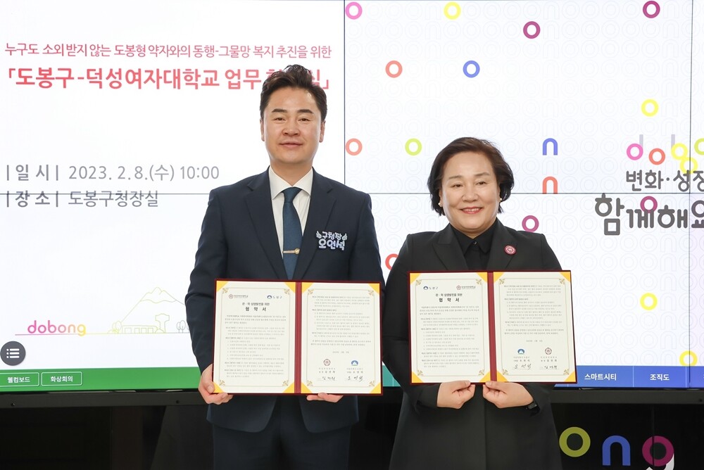 [대학저널 온종림 기자] 덕성여자대학교는 지난 8일 서울 도봉구와 ‘도봉형 약자와의 동행, 도봉 그물망 복지 추진’을 위한 업무협약을 체결했다고 9일 밝혔다.