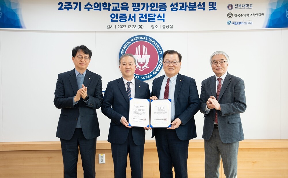전북대 수의대는 28일 인증서 전달식에서 박상열 수의대학장이 (사)한국수의학교육인증원으로부터 인증서를 받았다.