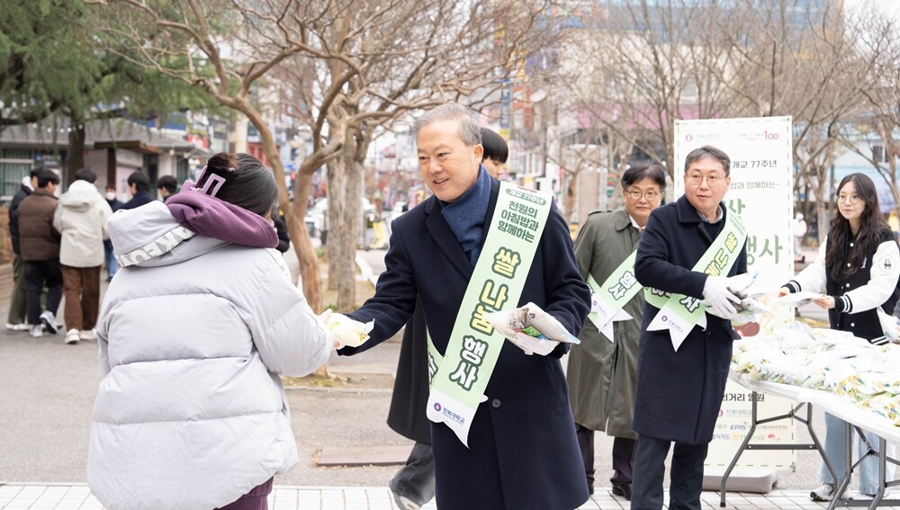 쌀을 건네받은 한 학생은 “천원의 아침밥 덕분에 든든하게 하루를 시작할 수 있어 만족감이 높은데, 이렇게 학생과 지역을 위해 대학이 적극 나서는 것 같아 추운 날씨에도 따뜻함을 느꼈다”며 고마움을 전했다.