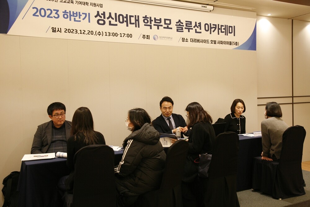 성신여대 입학관리실은 변화가 잦은 대입 정책으로 자녀들의 진학지도에 어려움을 겪고 있는 학부모들에게 1:1 입학 상담 등 실질적인 도움을 주고자 공개 사전 신청을 받았으며 30여 명의 학부모들이 참석해 성신여대 입학사정관 및 입시관리 직원으로 구성된 전문가들과 교수로부터 성신여대를 비롯한 대학 입학 기본 전략 및 정보를 듣고 개별 상담을 받는 시간을 가졌다,