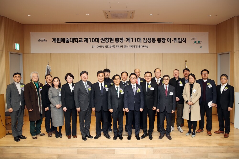[대학저널 온종림 기자] 계원예술대학교가 지난 2일, 대학 파라다이스홀에서 제10대 권창현 총장의 이임식과 제11대 김성동 총장의 취임식을 개최했다.