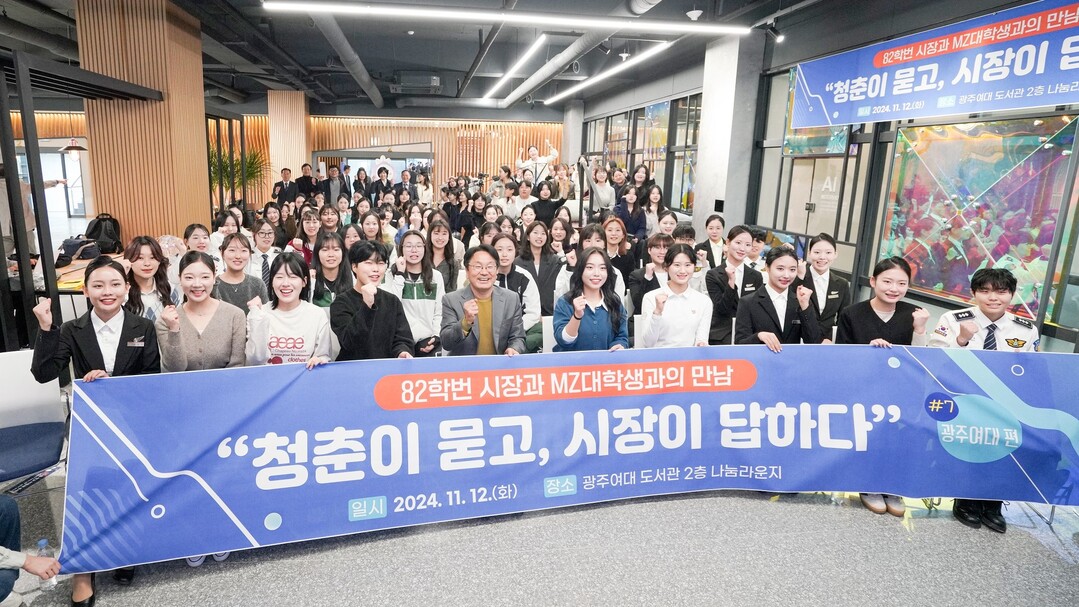 [대학저널 이선용 기자] 광주여자대학교는 11월 12일 본교 도서관 나눔라운지에서 강기정 광주광역시장과 ‘청춘이 묻고 시장이 답하다’라는 주제로 현장에서 학생들과 소통하는 시간을 가졌다.
