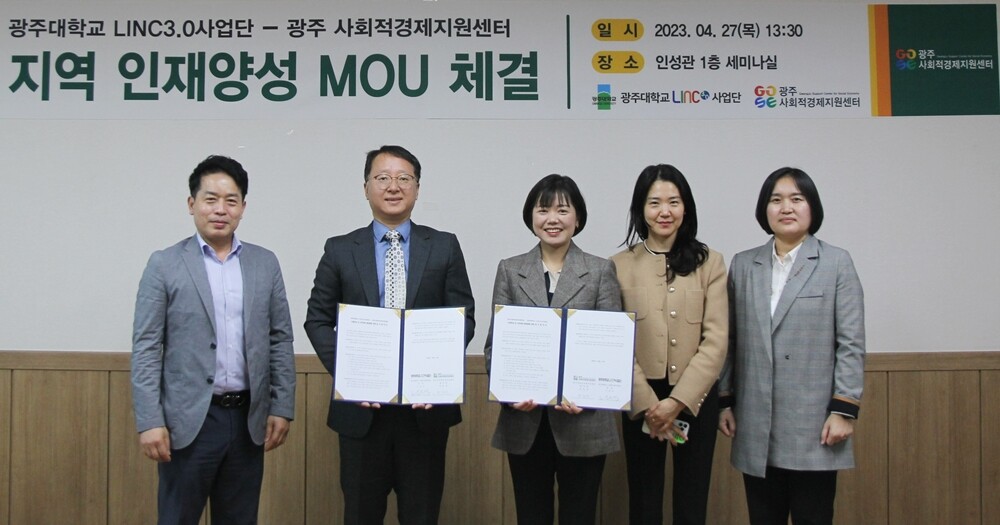 [대학저널 조영훈 기자] 광주대학교 LINC3.0사업단은 지난달 27일 지역인재 양성과 취·창업 지원을 위해 광주사회적경제지원센터와 업무협약을 체결했다고 2일 밝혔다.