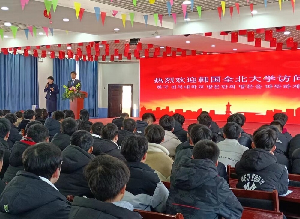 전북대 방문단이 중국 하남성 평정산시 노산현 제3고급고등학교 학생들에게 전북대의 우수성 등을 설명했다. 사진=전북대 제공 |