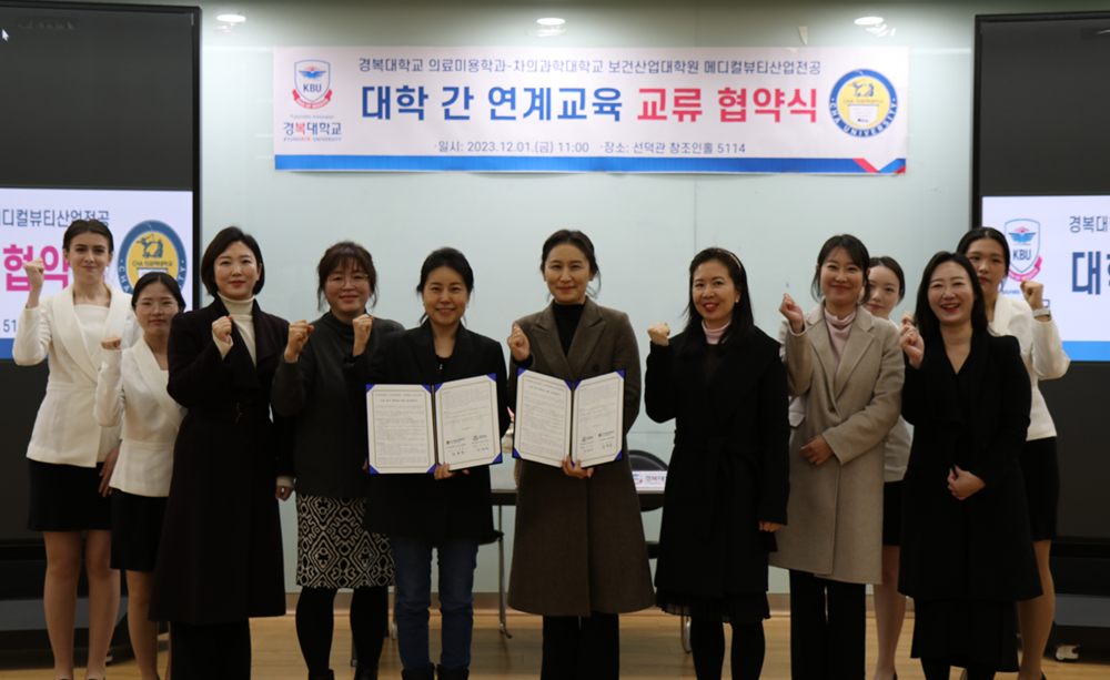 [대학저널 온종림 기자] 경복대학교 의료미용학과가 지난 1일 남양주캠퍼스 선덕관 창조인홀에서 차의과학대학교 보건산업대학원 메디컬뷰티산업전공과 대학 간 연계교육 교류를 위한 업무협약을 체결했다.