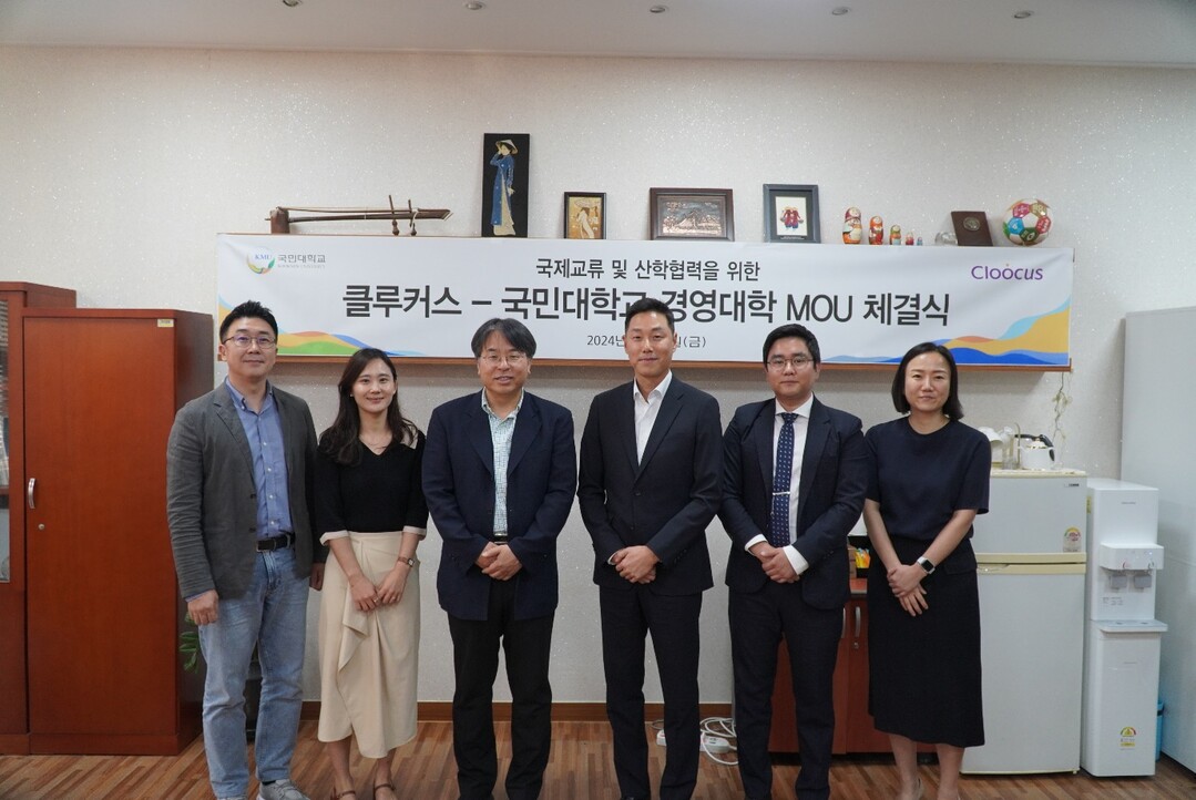 [대학저널 이선용 기자] 국민대학교 경영대학과 데이터 및 인공지능 기반의 클라우드 컨설팅 및 매니지먼트 전문기업 클루커스가 지난 8월 16일 디지털 비즈니스 환경에 적합한 인재 양성을 위한 산학협력 양해각서를 체결했다.