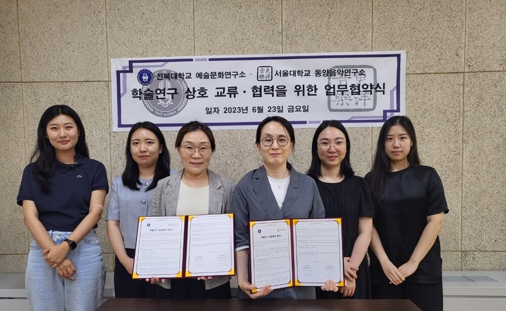 전북대 신은주 예술문화연구소장과 서울대 성기련 동양음악연구소장은 한국음악학을 포함한 문화 예술 연구 및 인재 교류를 위한‘학술연구 상호 교류·협력’업무 협약을 지난 23일 체결했다.
