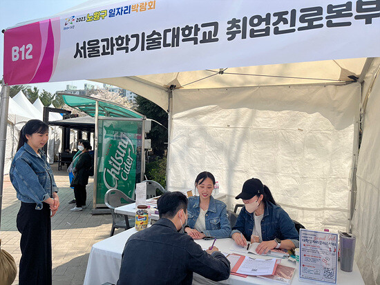 서울과기대 취업진로본부가 지난 1일 ‘2023년 노원구 일자리박람회’ 운영을 지원했다. 사진=서울과기대 제공 |